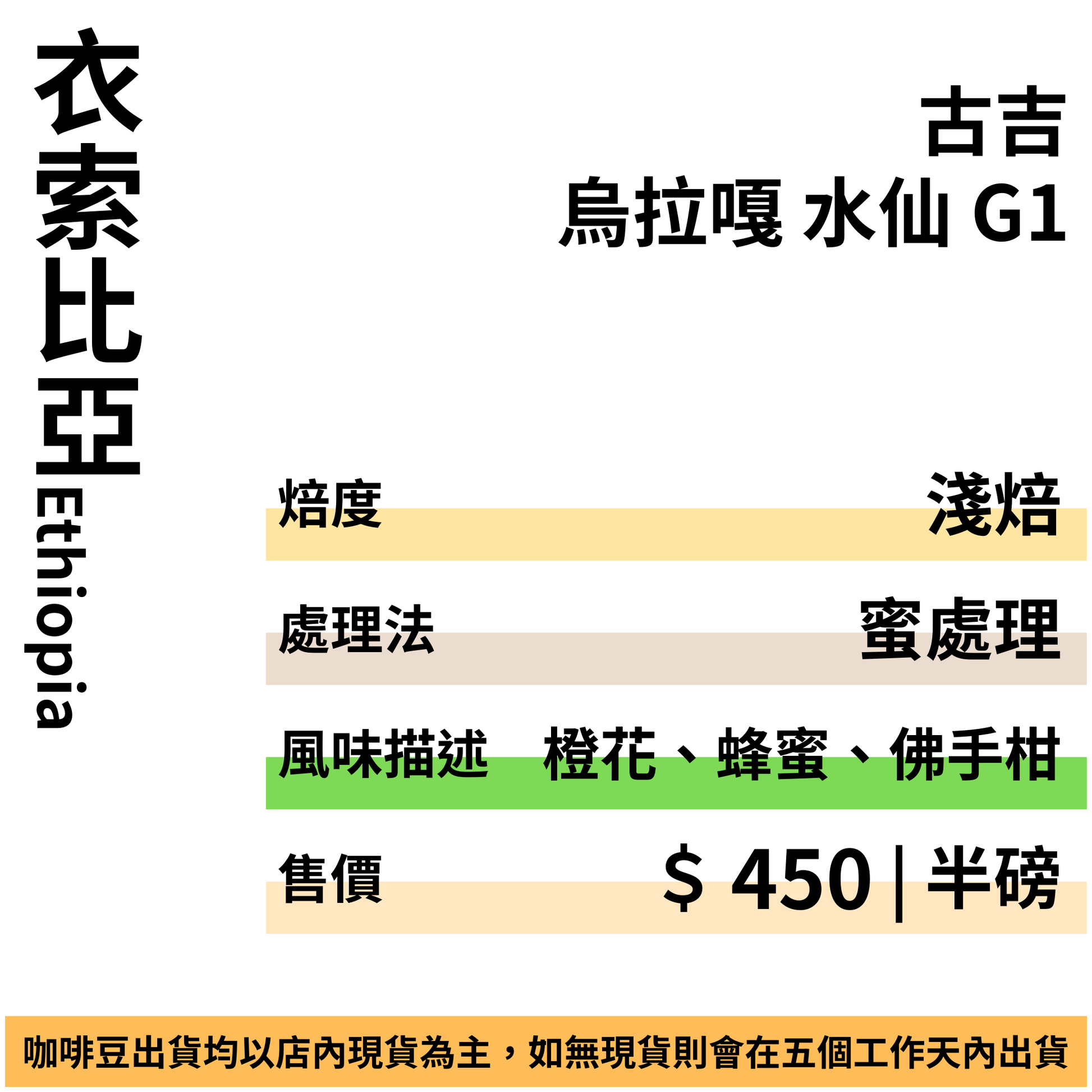 衣索比亞 古吉 烏拉嘎 水仙 G1 蜜處理
