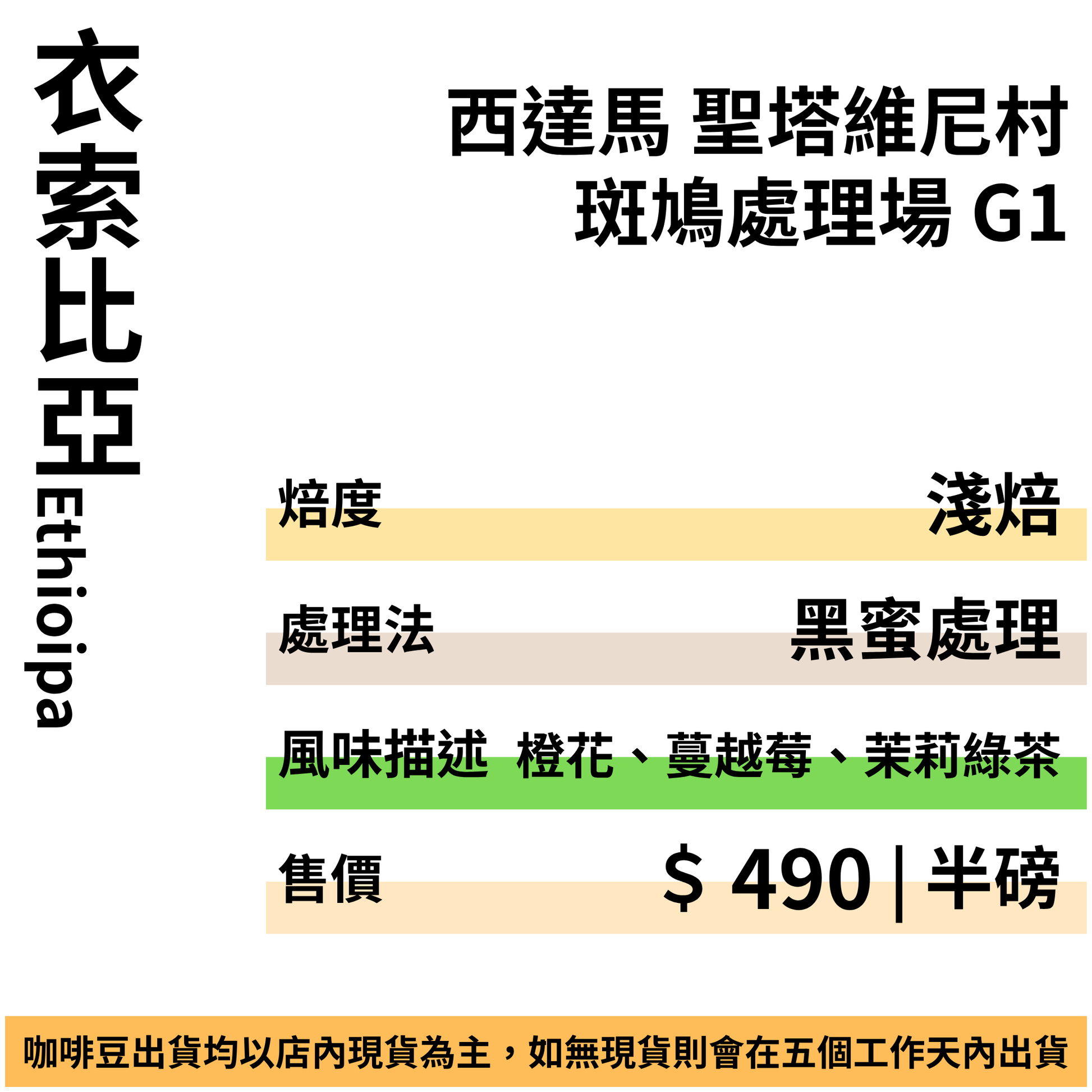 衣索比亞 西達馬 班莎鎮 聖塔維尼村 斑鳩處理廠 黑蜜處理 G1